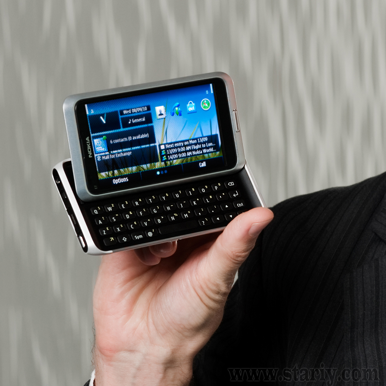 Новинка очень удобно лежит в руке и весит достаточно немного, хотя в конструкции помимо пластика используется достаточно много металла. Корпус монолитный, выполнен из листа алюминия. Лицевая часть Nokia E7 защищена специальным стеклом, которое предотвращает появление царапин.